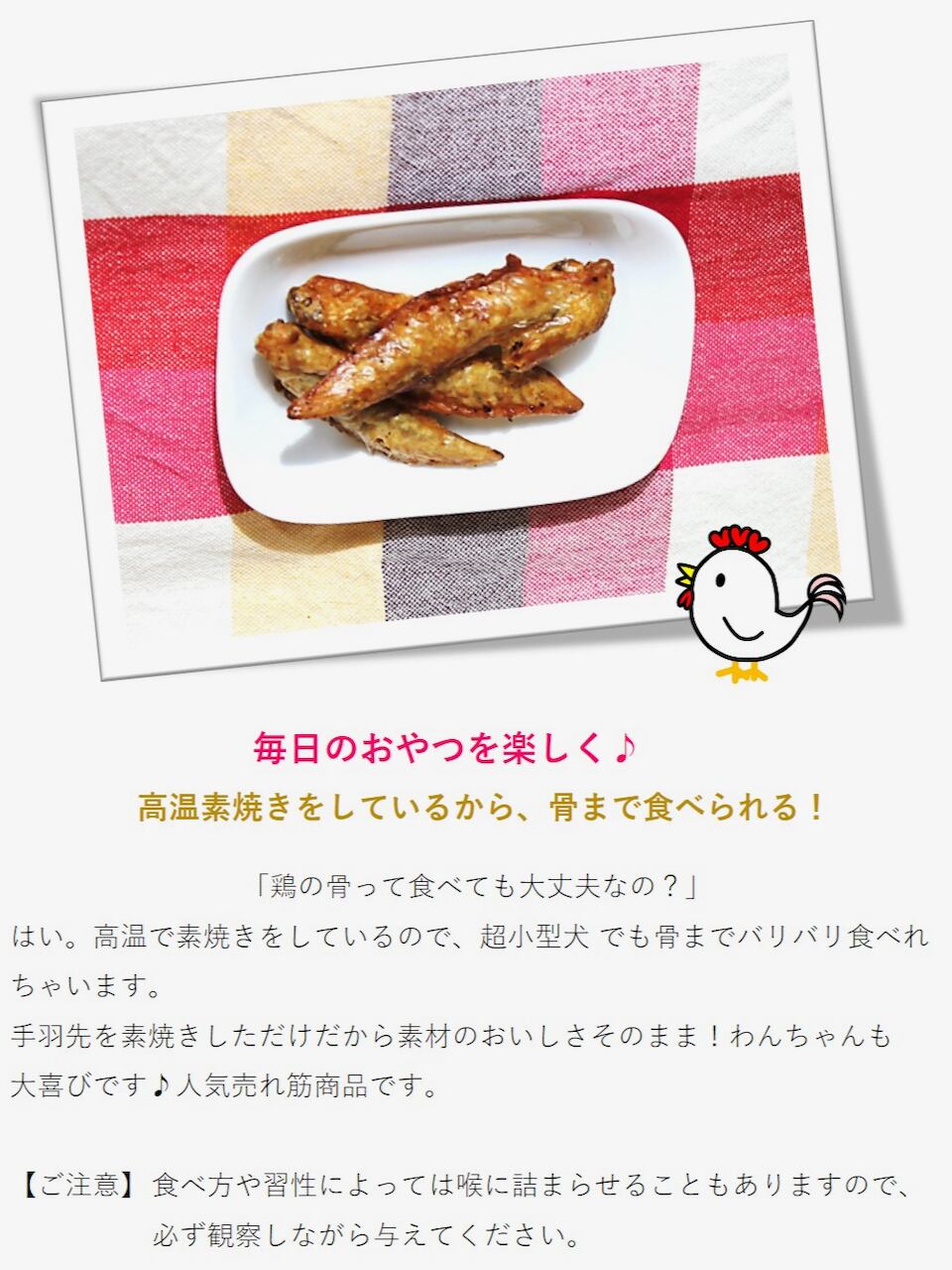 手羽先をそのまま高温で素焼きしているので、超小型犬もポリポリと食べられます!!