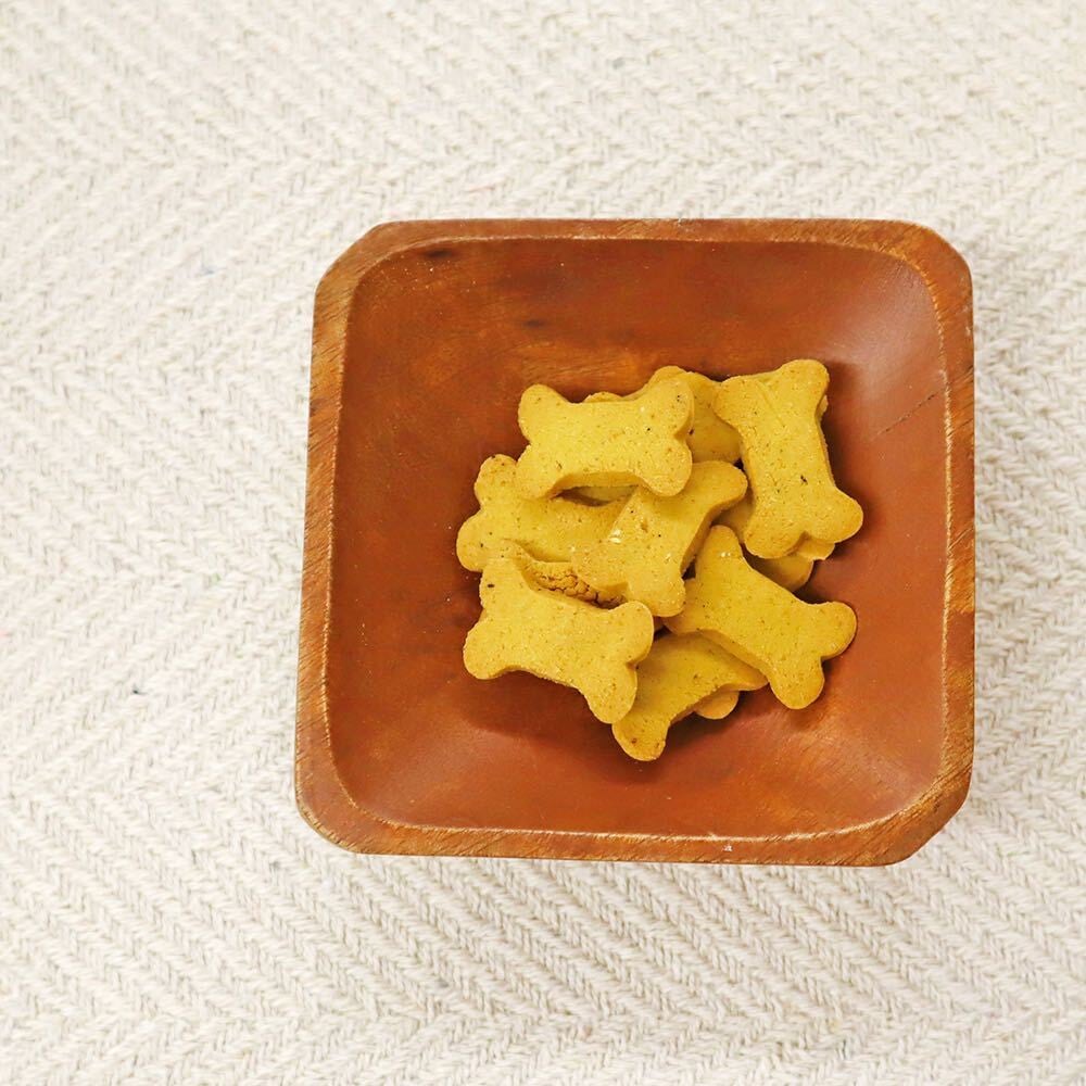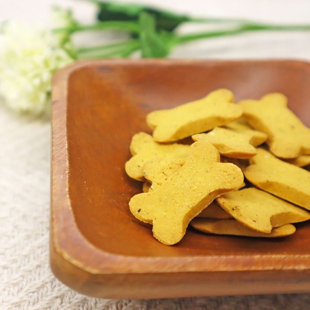 わんちゃんに人気の食材である「かぼちゃ」を贅沢に練り込み、サクサクのクッキーに仕上げました。